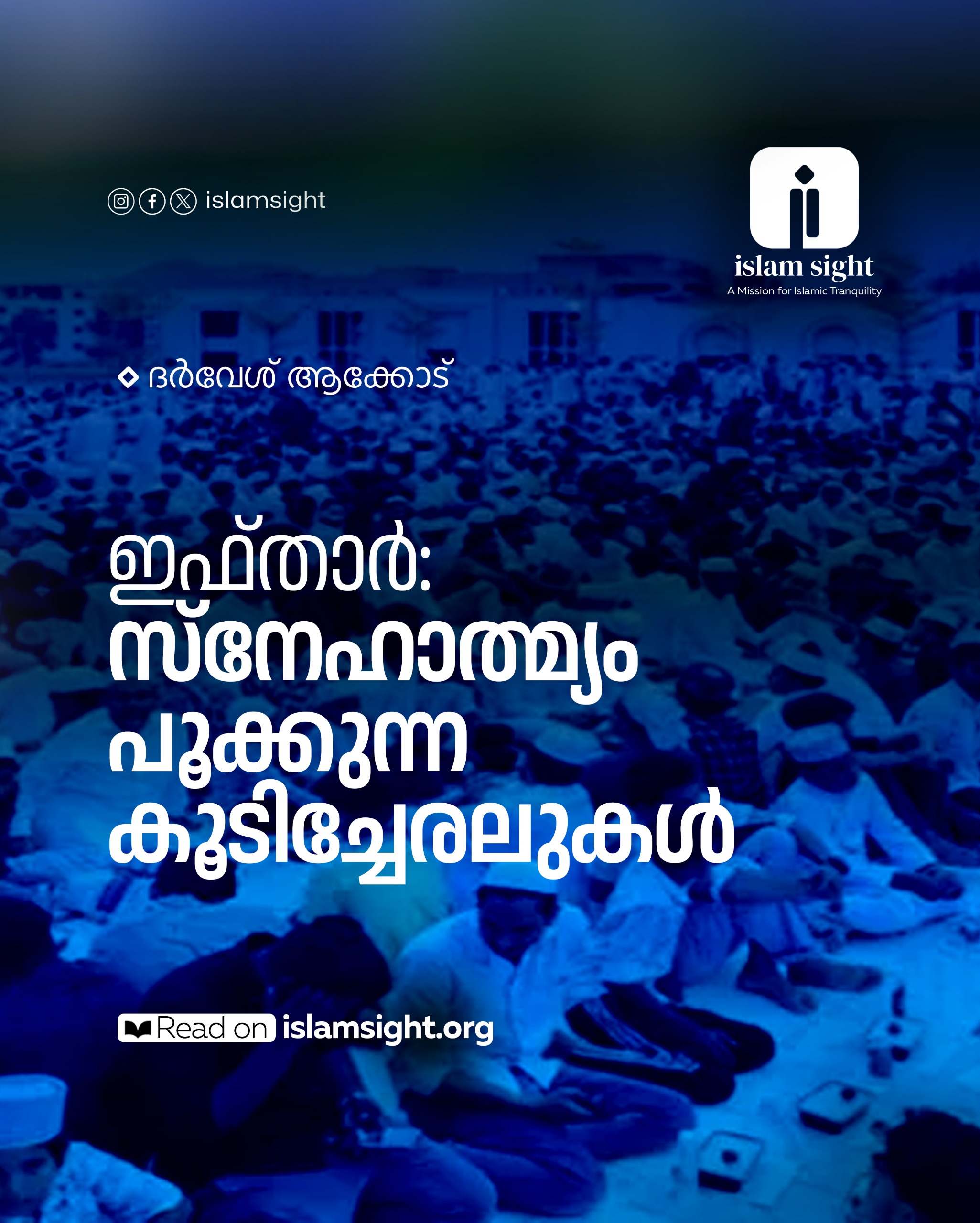 ഇഫ്താറുകൾ വെറുമൊരു ഭക്ഷണ വിരുന്ന് മാത്രമല്ല. അത് മനുഷ്യ ബന്ധങ്ങൾ പുതുക്കപ്പെടുന്ന സാമൂഹിക ഐക്യം ഊട്ടിയുറപ്പിക്കുന്ന ഒരു സമഗ്ര അനുഭവമാണ്.