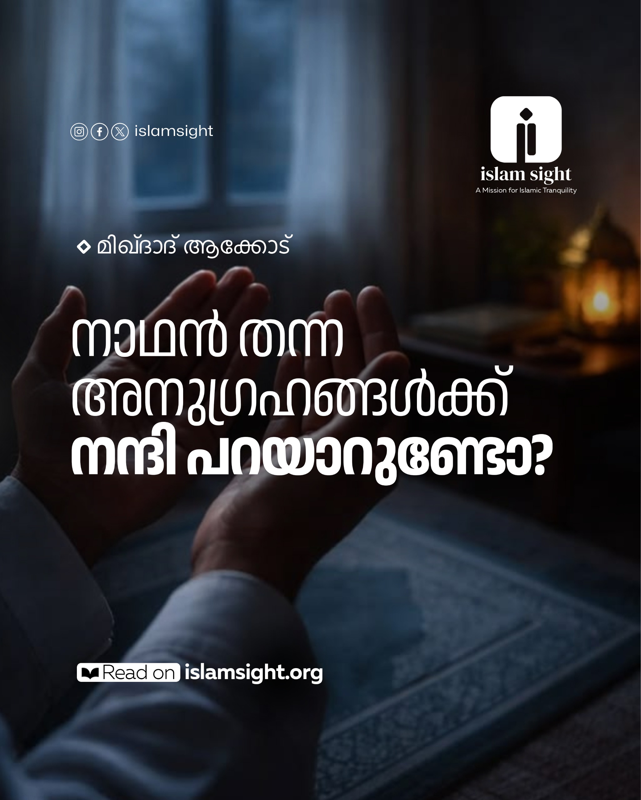 ഇത് നമ്മെ ഒരു പ്രധാന യാഥാർഥ്യത്തിലേക്ക് നയിക്കുന്നുണ്ട്. നന്ദി എന്നത് അല്ലാഹുവിനോടുള്ള ബന്ധം മാത്രമല്ല, മനുഷ്യരോടും ബന്ധപ്പെട്ടതാണ്. മാതാപിതാക്കൾ, അധ്യാപകർ, സുഹൃത്തുകൾ നൽകിയ സഹായങ്ങൾക്കും നന്ദി പ്രകടിപ്പിക്കുന്നത്, നമ്മുടെ ആത്മീയ വളർച്ചയുടെ ഭാഗമാണ്.